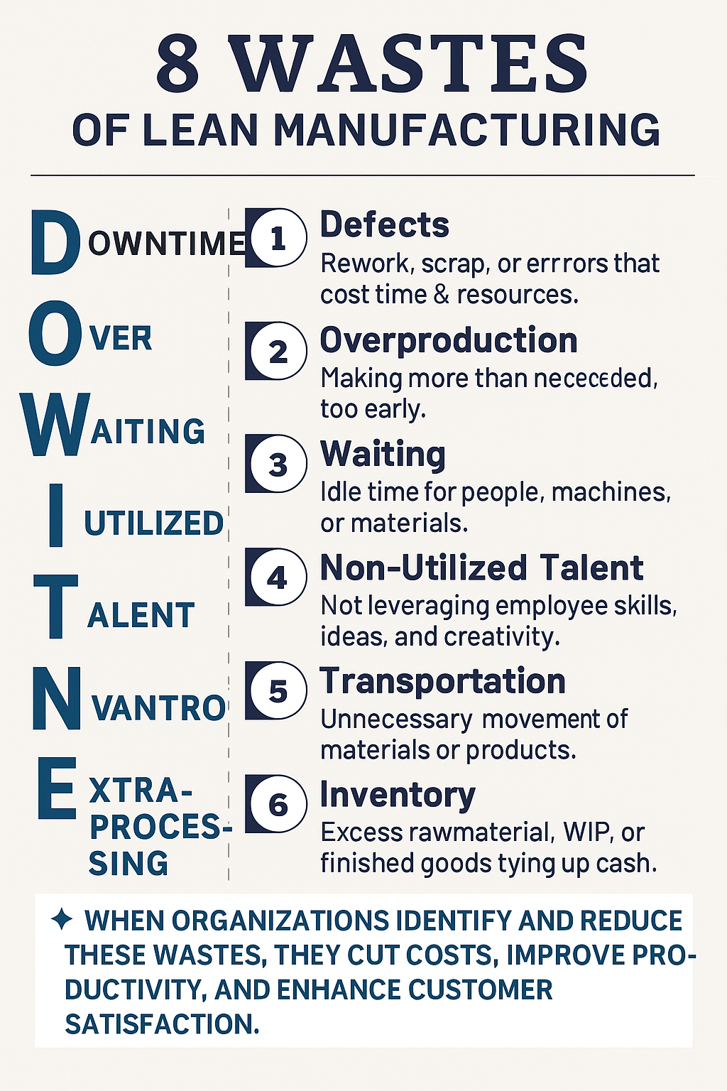 🏭 8 Wastes of Lean Manufacturing (DOWNTIME): Explained with Examples